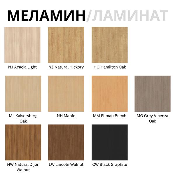 » Избор цвят на металната основа: бял, сив, черен, хром. » Цвят плот: избор от 13 декора.
