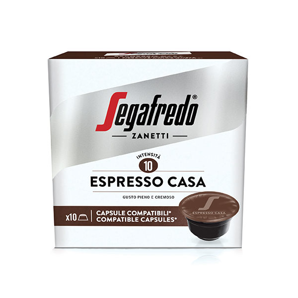 Segafredo ESPRESSO CASA е специална селекция от кафе от най-добрите сортове Арабика и смеси от Робуста за домашно приготвяне на еспресо. Капсули съвместими със системата Dolce Gusto Опаковка - 10 бр. капсули