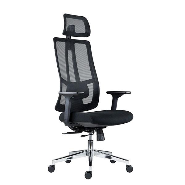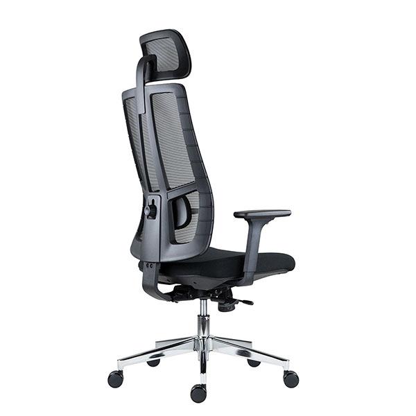 • ергономичен стол с черна мрежеста облегалка и тапицирана седалка с текстил седалка