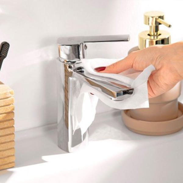 Почиства до блясък и с лекота премахва упорити замърсявания, петна, сапунени утайки и остатъци от варовик.