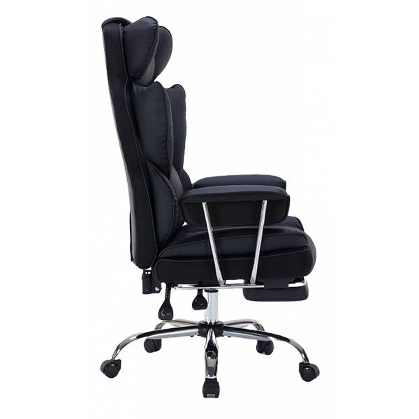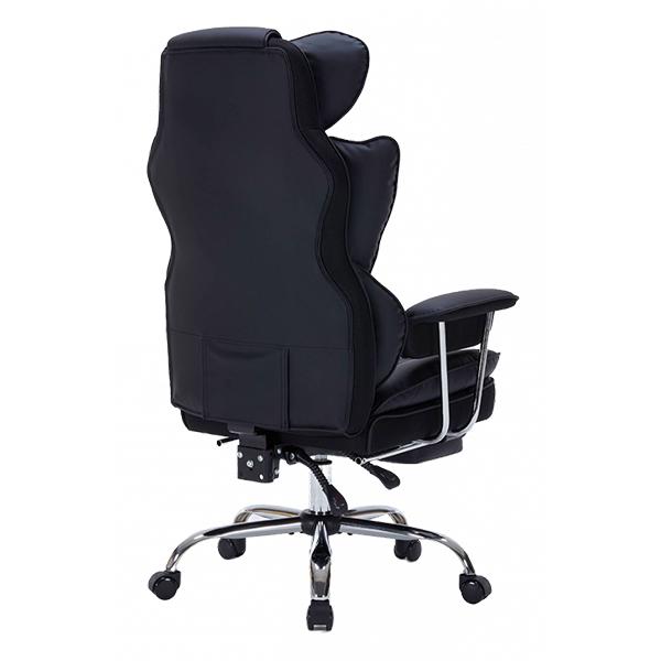Изработен от висококачествена еко кожа, той впечатлява с изтънчен външен вид и усещане за престиж. Високата облегалка е внимателно проектирана, за да осигури пълна поддръжка на гърба и раменете, а вградената възглавница в лумбалната област гарантира естествена опора и облекчаване на напрежението при продължително седене.