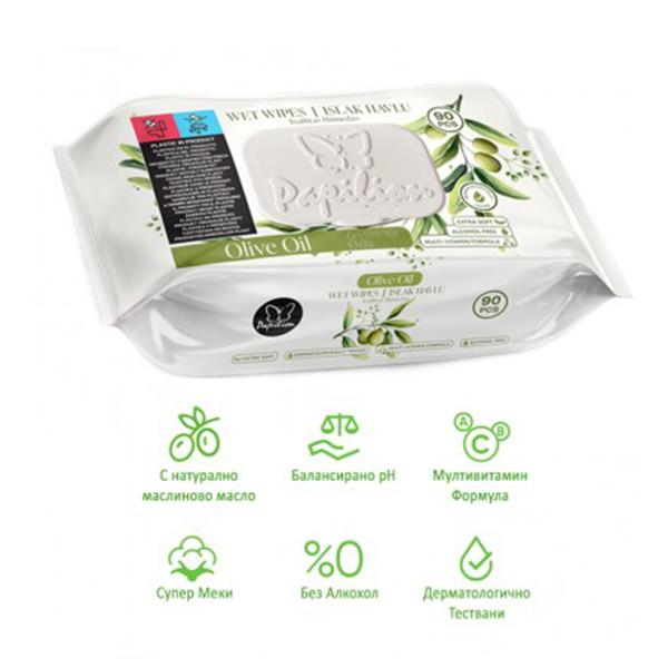 МОКРИ КЪРПИ PAPILION OLIVE OIL 90 БР.