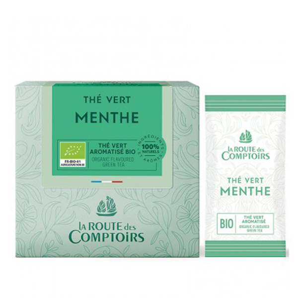 Био Зелен чай Мента е вдъхновен от традициите на Магреб, този био зелен чай е комбиниран с листа от мента за освежаваща и напълно натурална запарка. Ментата балансира зеления чай, като оставя дълготрайно усещане за свежест в устата.