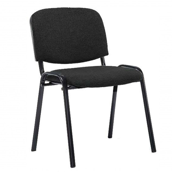 Посетителски стол с черна метална рамка, тапициран в дамаска, с възможност за стифиране